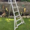 The ladder is manufactured from aluminium and the rungs are textured to reduce slippage. It is designed to be positioned by hand for maximum safety, allowing the user to precisely position the ladder to avoid holes or other hazards. The back of the ladder should be towards the tree or hedge centre.